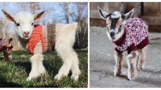 ลูกแพะน่ารักสวมเสื้อสเวตเตอร์ถักเล็ก ๆ เพื่อให้อบอุ่น(VDO)