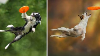 ช่างภาพจับสุนัขกระโดดกลางอากาศเพื่อจับ Frisbees