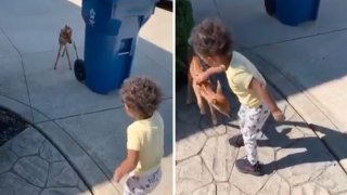 เด็กวัยหัดเดินพบกับลูกกวางและการเผชิญหน้าก็น่ารักเกินไป(VDO)
