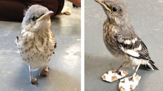น้ำใจมนุษย์! สัตวแพทย์ทำรองเท้าจากกระดาษแข็งเพื่อรักษานกม็อกกิ้งเบิร์ดเท้าพิการโดยกำเนิด