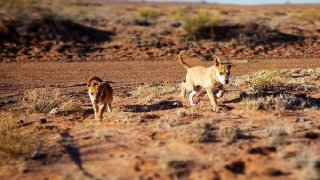 ชายหนุ่มเจอลูกหมาสองตัววิ่งเข้ามาหา ระหว่างขับรถผ่านทะเลทรายอันร้อนระอุ