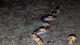 ขอไปด้วยนะ "คางคก" นับ 10 เกาะหลัง "งูเหลือม" ตัวเขื่อง แถมอสรพิษร้ายไม่รู้เรื่อง (คลิป)