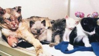แม่เหมียวผู้กล้าหาญ ลุยไฟเข้าช่วยลูกๆ 5 ตัว