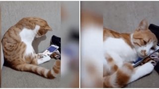 สุดซึ้ง แมวคลอเคลียอยู่กับโทรศัพท์ หลังจากดูคลิปเจ้าของที่เสียชีวิตไปแล้ว
