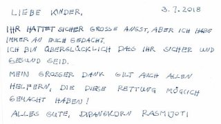 ข้อความจากทีมหมูป่าและโค้ช ฝากทีมนักดำน้ำต่างชาติ ออกมาจากเนินนมสาว เมื่อคืนวันที่ 6 ก.ค. 61