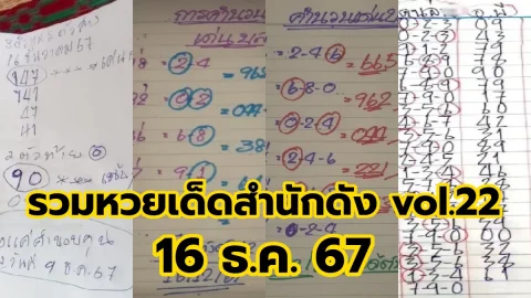เลขเด็ด เลขมาเเรง เลขดัง "รวมหวยเด็ดสำนักดัง vol.22" งวดวันที่ 16 ธันวาคม 2567