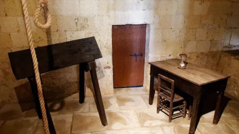 The Spanish Donkey เครื่องทรมานสุดโหด ให้เหยื่อขี่ไม้แหลมที่มีน้ำหนักถ่วงขาทำให้ร่างกๅยถูกฉีกออก