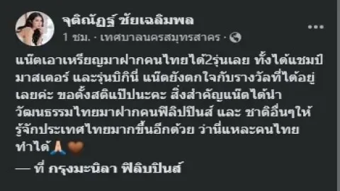 แน๊ต เกศรินดีใจมากคว้า 2 เหรียญทองเพาะกายที่ฟิลิปปินส์