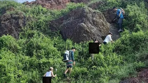 เหล่าสาวจีนเดินขึ้นเขา ด้วยการสวมกกน.