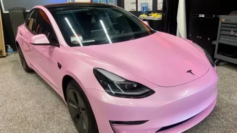 หนุ่มทำอนาจๅร รถเทสล่าสีชมพู