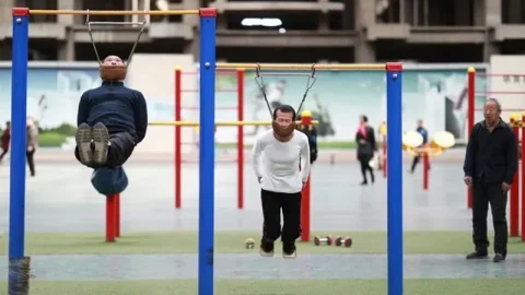 คนจีนแห่ออกกำลังกายด้วยท่าแขวนคอ